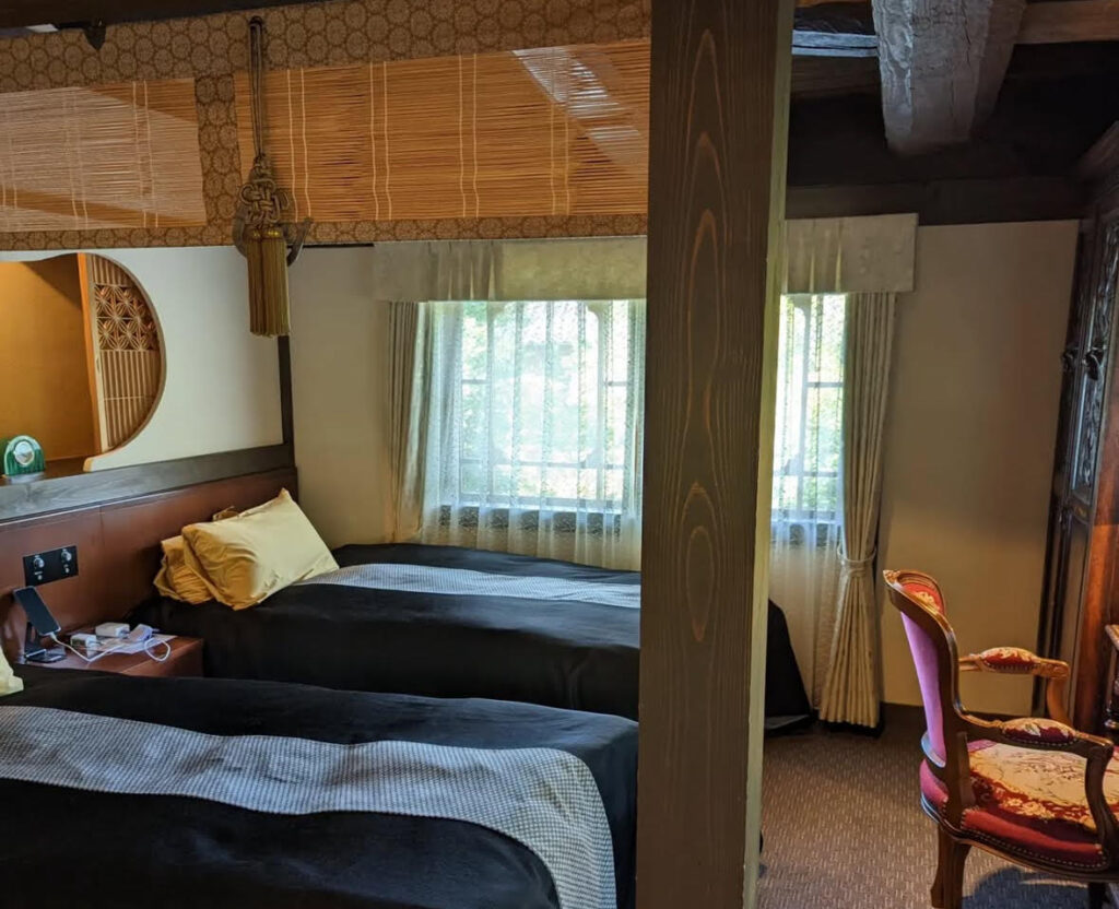 バルコニーからは森林浴です。出雲の純和風の宿は部屋もまた、すこぶるよい!ドレッシングルームのアイテムの充実ぶりです。チェックインからの動線でワクワク感マシマシとなっています。かき氷のおもてなしもあるんです。