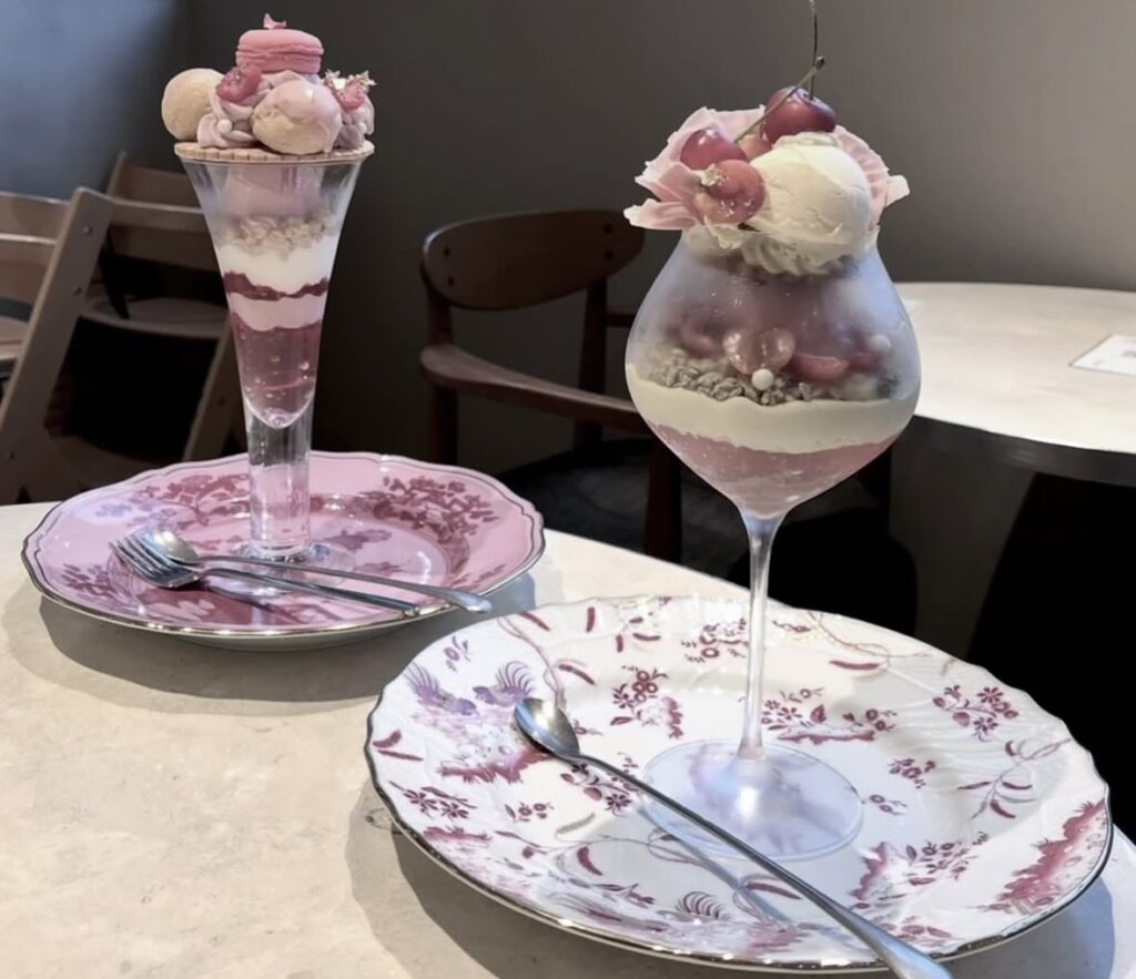 様々なスイーツに加えて柑橘パフェや桜パフェも揃ってます。さくらんぼフリルパフェがおすすめです。