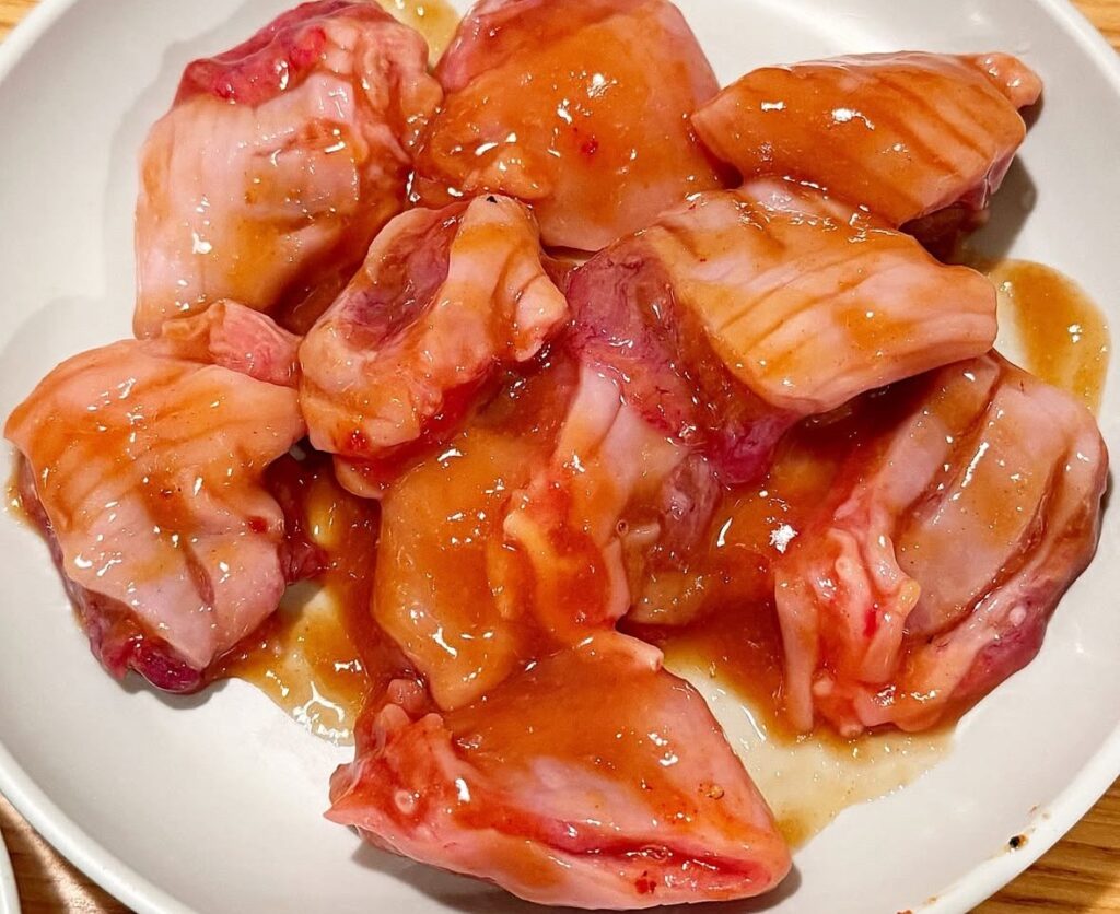 こぶくろが大ぶりでぷりぷりで、この新鮮な歯切れが素晴らしいです。日本一、いや世界一のコブクロとなっています。一人一皿ぺろっと食べちゃうんです。たれ、塩、辛味噌3皿ぺろっと無くなります。