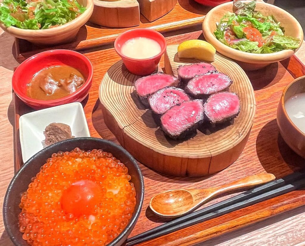 豪華ないくら丼も外せません。熱々のいくら麦飯に、たっぷりのとろろをかけて、肉厚な牛タンを合わせて食べるともうやめられないんです。