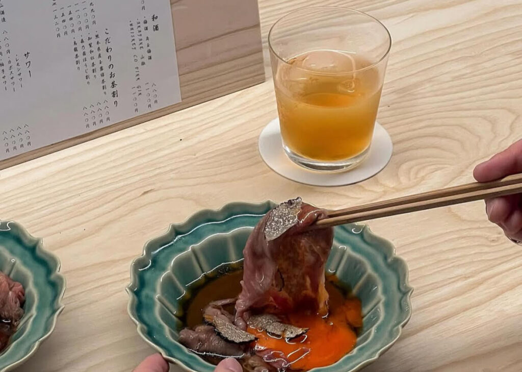 前菜から甘味まで旬の食材を使った料理はどれもほんとに絶品で特に黒毛和牛すき焼きはトリュフと卵黄を贅沢に絡めて食べるともう感動レベルです。〆もまさかの3種類出てきてめちゃくちゃ満腹なるし、日本酒やワインもいっぱい飲んでほんとに幸せになります。