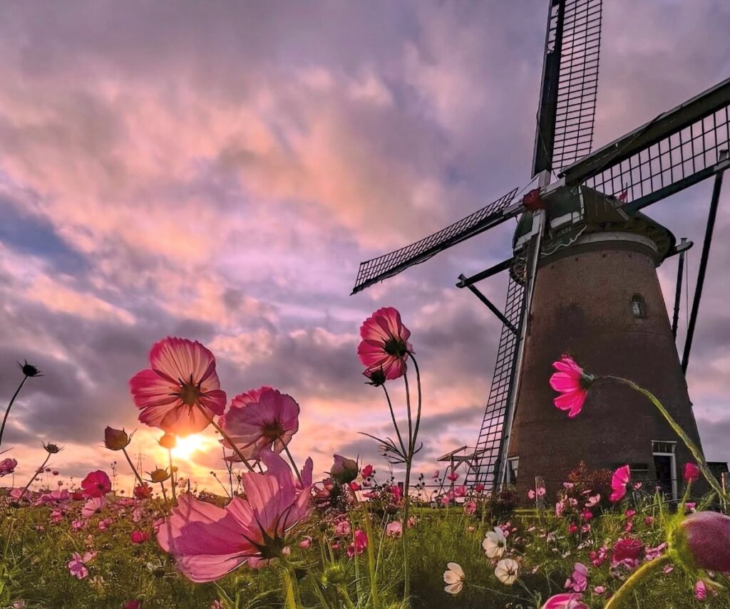 静かに主張してきた秋桜です。千葉県佐倉市にあります。印旛沼のほとりに広がる公園でオランダの風車があるんです。彼岸花やマリーゴールドやコスモスなどたくさんの花が咲いているので、風車と花の風景が綺麗!
