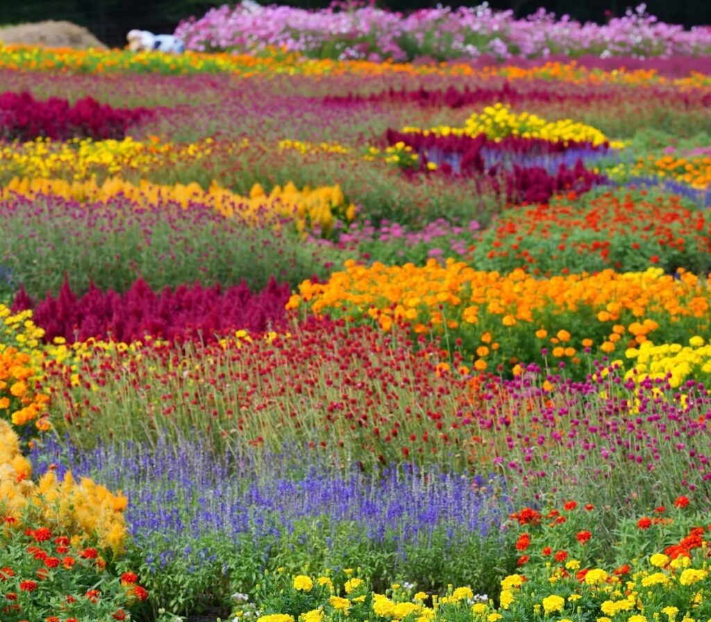 ここの花畑は、品種毎にまとまって、パッチワークの絨毯となっています。育てて下さったスタッフの方に感謝しかありません。