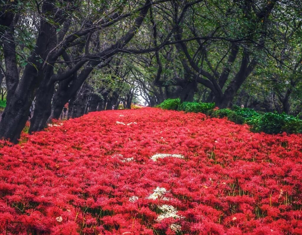 幸手権現堂堤の曼珠沙華が絶景です。土手一面が赤色に染まりとっても見事となっています。