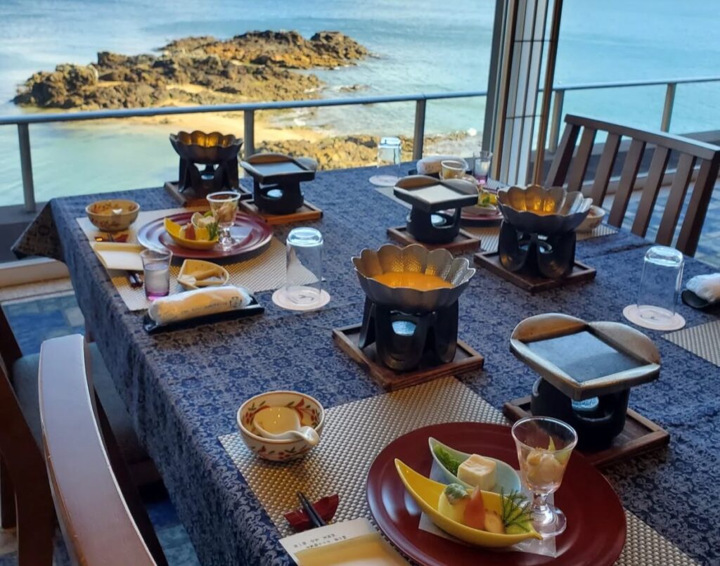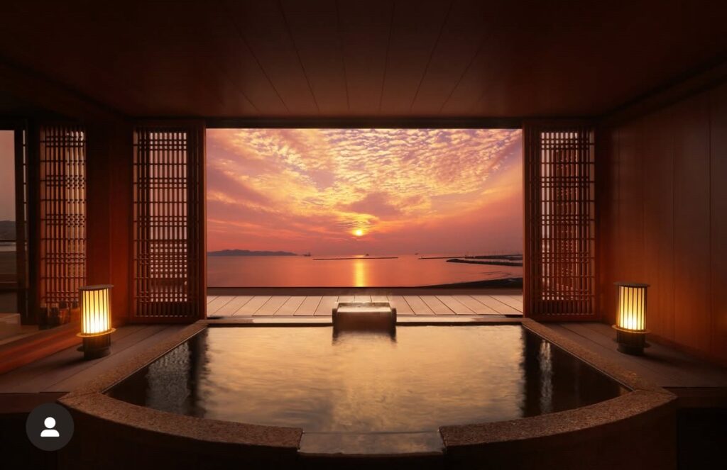 部屋に露天風呂が付いてたり、食事やプール付きラウンジも素敵です。有名人も行ってる温泉となっています。網元の宿とあってほんと料理が最高です。海の見えるホテルの部屋から夕日を眺めましょう。天気が良ければ富士山が見えます。