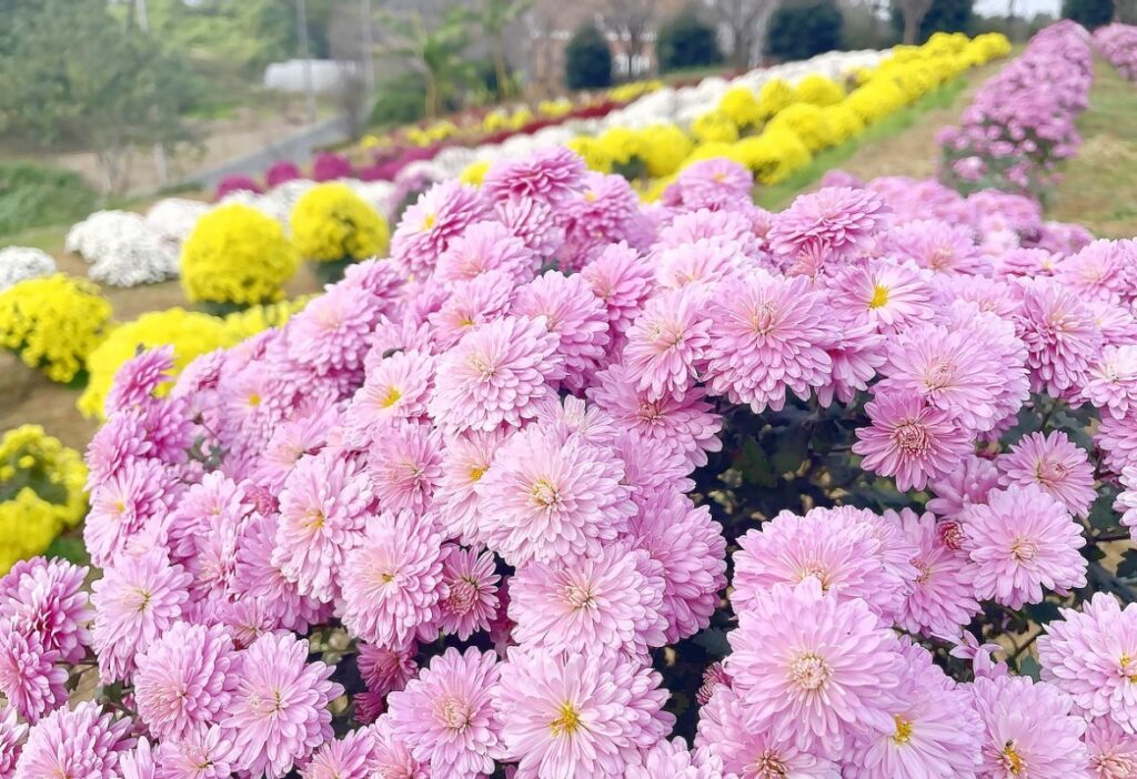 シャボン玉のようなまん丸お花、めっちゃlovelyです。ラベンダーやコスモスも満開になります。色鮮やかなガーデンマム畑癒されるんです。お花に囲まれる日常ステキ!夏はひまわりまつりがやっています。