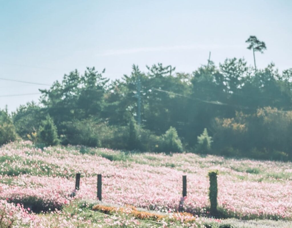 ピンク色の花びらの色合いが可愛いコスモスが見られます。自然いっぱいの中、動物とふれあえて楽しいです。空とつながってしまいそうな、一面の空色も楽しめます。牧歌的な風景が最高にマッチしていて、癒されるんです。