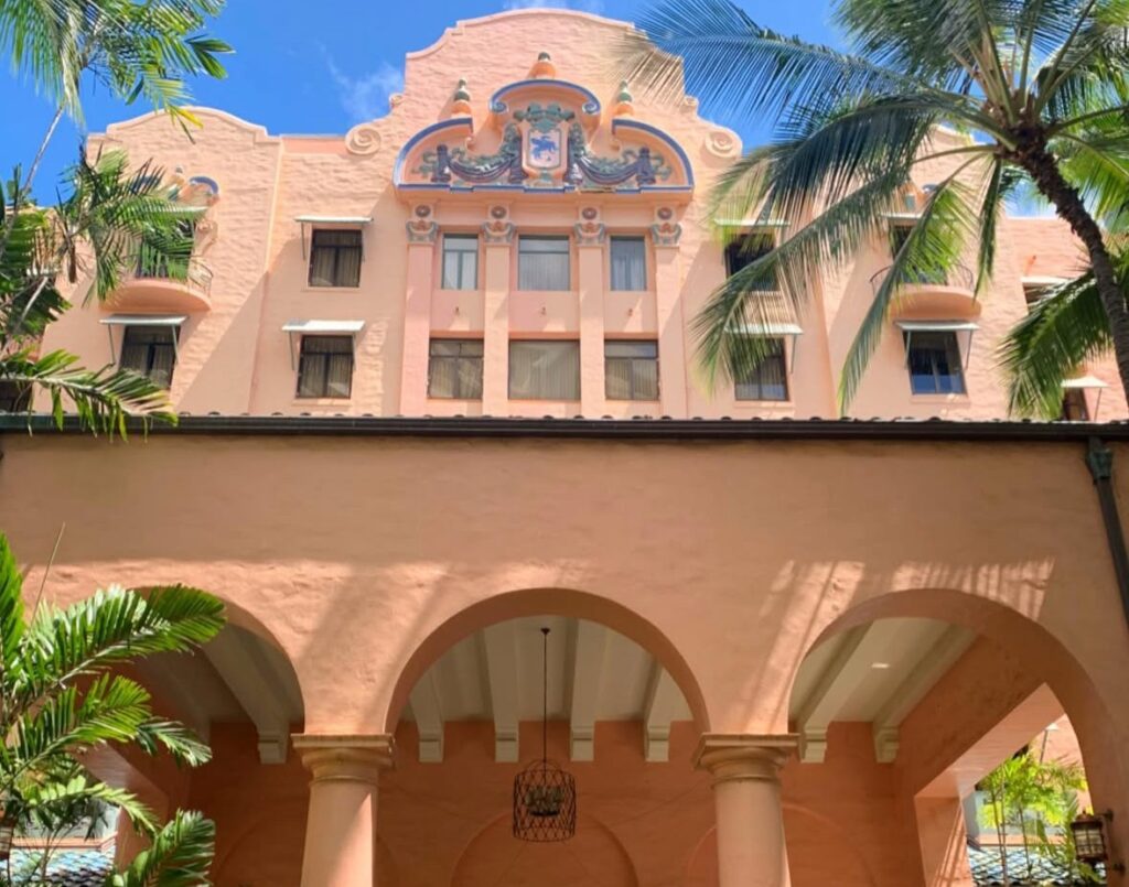 やっぱり素敵です。ワイキキの真ん中に位置する、オーシャンフロントのリゾートホテルとなっています。館内は、昔と変わらない、穏やかな空気が流れているんです。ピンクパレスとも呼ばれています。