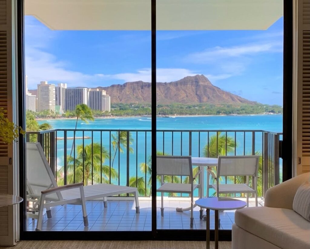 ワイキキの空、海、緑を眺めながら、バルコニーで朝食はいかがですか?「Sheraton Waikiki Beach Resort」