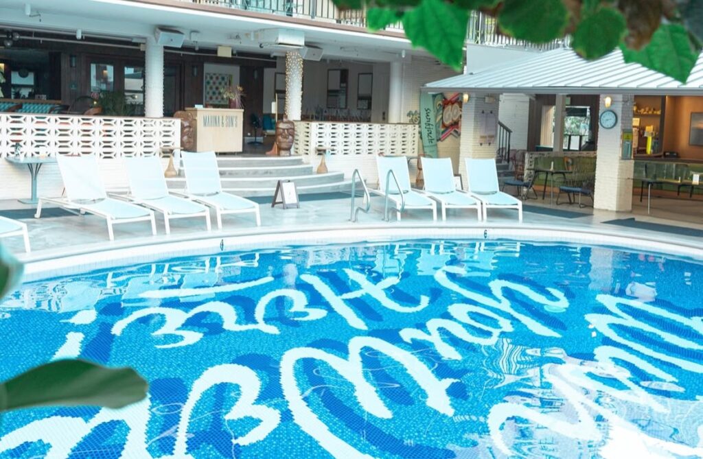 プールは上からみるとメッセージが書いてあって、お洒落で可愛いです。プールが可愛くて有名な場所となっています。可愛いカフェもあるしほんとオシャレなホテルです。インテリアが可愛くて、ホスピタリティが最高で、リーズナブルで、リピート間違いなしとなっています。
