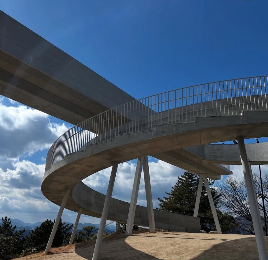 アートな雰囲気の展望台です。尾道水道や尾道大橋が見られるいい場所となっています。対岸(向島)の近さが感じられるんです。