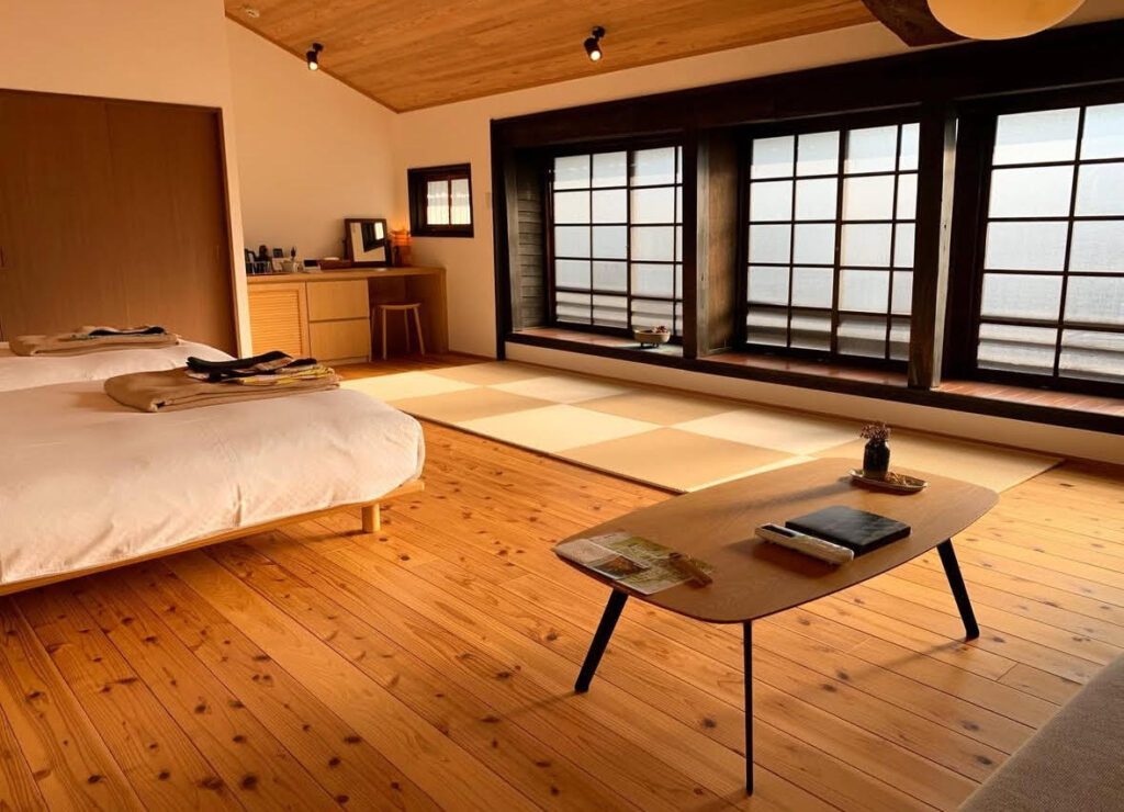 瀬戸内の潮風が心地よく吹き抜けるまち、竹原にあります。チェックインからチェックアウトまで自由に使える電動アシスト自転車を用意していただけるんです。夕焼けに染まる海沿いや、朝の静けさに包まれるまち並みを、自分のペースで気ままに巡る、そんな贅沢な時間を過ごせます。