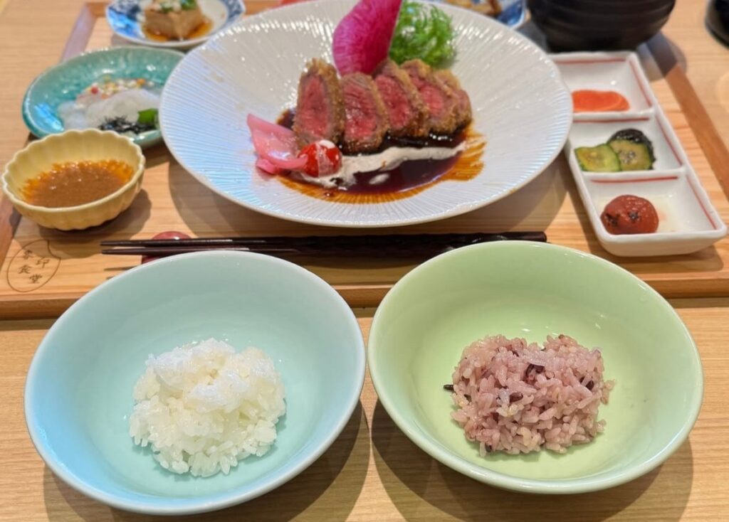 象印の圧力IH炊飯ジャー、炎舞炊きの実力に圧倒されます。象印食堂は炎舞炊きで炊いたご飯がいただけるちょっと贅沢なご飯屋さんです。13:30前でも行列が出来ています。色々な定食がありますが全てのメニューで、3種類の炎舞炊きご飯が食べ放題となっているんです。