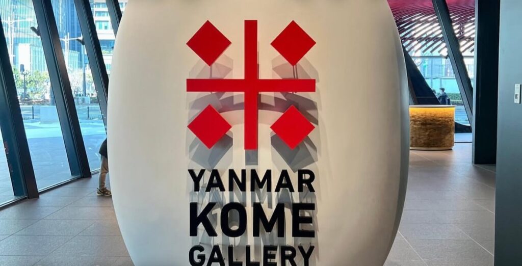 産業機械などを扱うメーカーの「ヤンマー」が運営する、お米と農業をテーマにした複合型施設です。施設は吹き抜けになっていて、壁面には水耕栽培のプランターが一面にレイアウトされ、中央には和紙でできた桜のオブジェが飾られています。