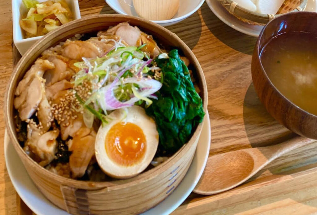 化学調味料を使わず、全国の生産者さんから送られてくるオーガニック野菜や、安心な食材・調味料を使った、後ろめたさのない料理やドリンクがあります。
