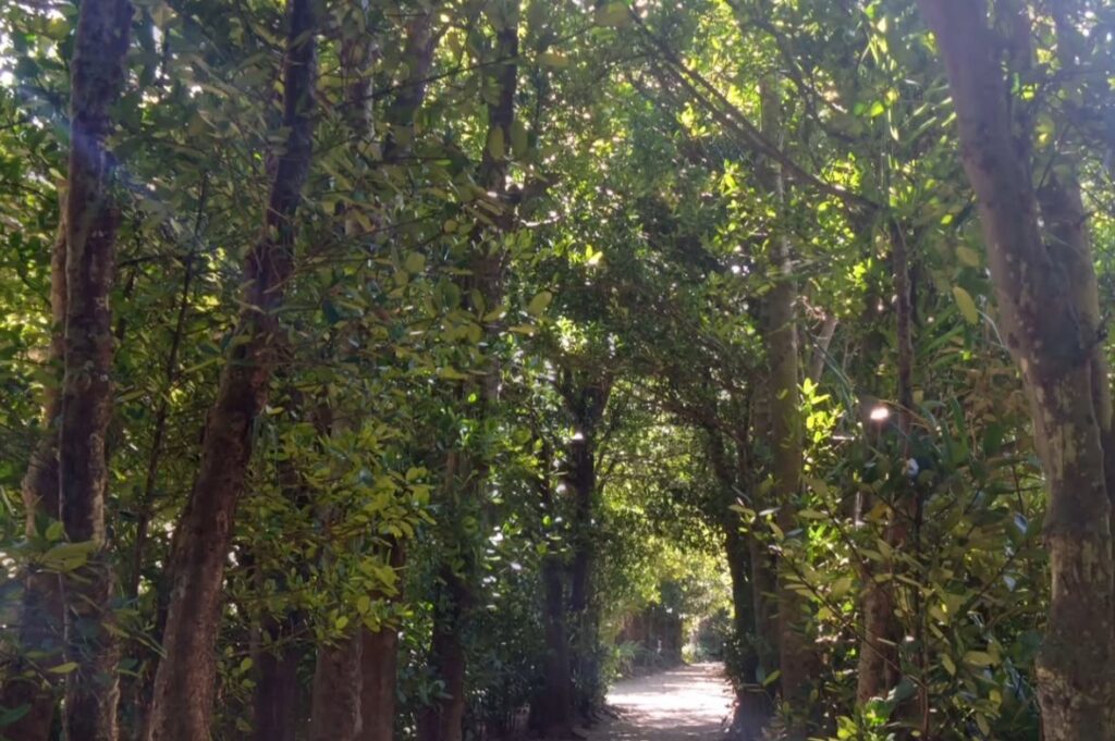 沖縄にある緑のトンネルです。”フクギ”の木が約1Kmにわたって続くフクギの並木道となっています。樹はなんと古いもので樹齢300年もあるんです。フクギはもともと防風林や防潮林として植えられる常緑樹で、海沿いにある備瀬エリア&台風が多い沖縄で集落を守るために作られています。