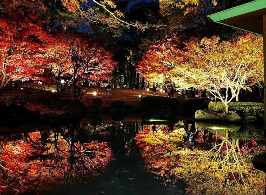 杉並区荻窪にあります。公園というより庭園のような感じで、住宅街のこんな所に?って場所にあるんです。16:30に一旦閉門されて、17時からのライトアップまで並んで待ちましょう。リフレクションが本当に素晴らしく、吸い込まれるようです。