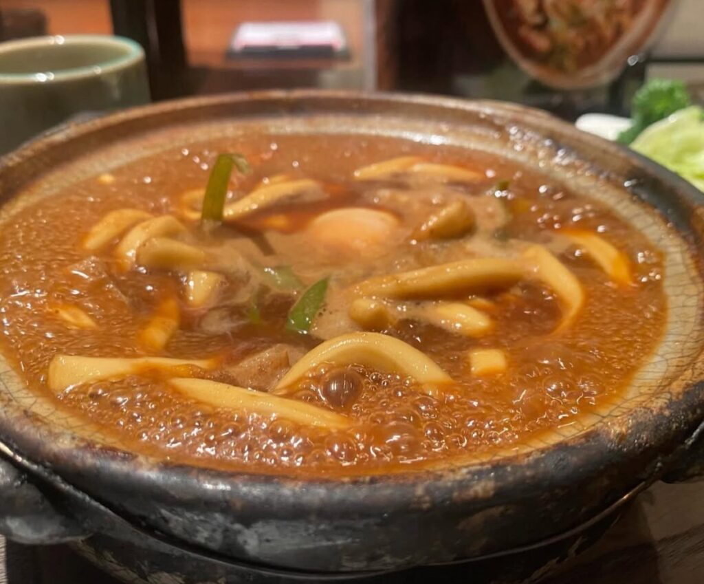 ぐっつぐつで到着します。芯が残り、ラーメンで言う針金のようなかたさで楽しむ煮込みうどん!もっちゃりもっちゃりとした食感です。