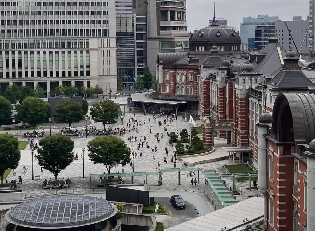 東京駅も新幹線も一望できます。東京駅が一望できる絶好のロケーションです。とても気持ちよい!気持ちいい風とキラキラの東京駅が気持ち良くって、さらりとお散歩するのにおすすめスポットです。