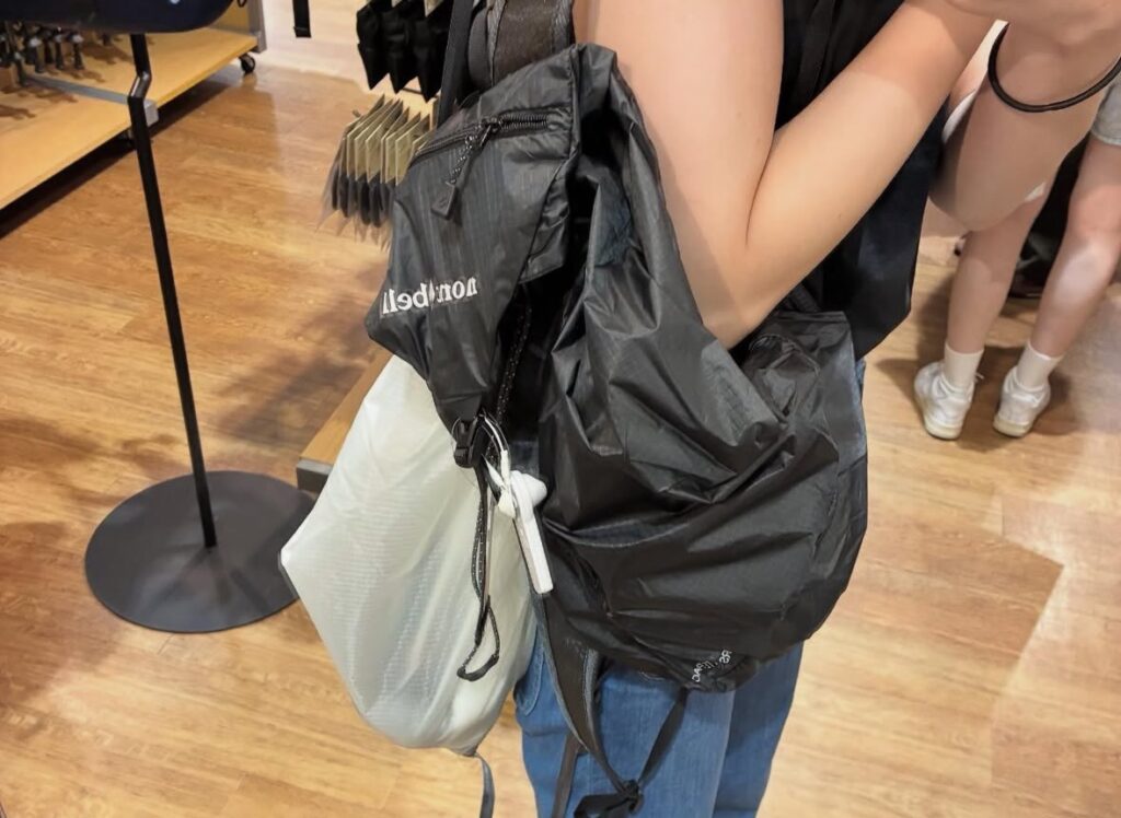 ショルダーのスマホ入れみたいなのがめっちゃ便利です。100%リサイクルポリエステルを使用し、軽量で強度にも優れたパッククロスを採用しています。