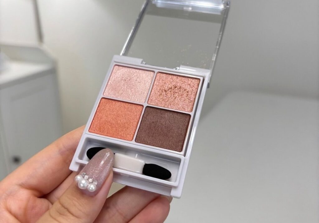 ピーチミルクみたいなまろやかピンクカラーが本気で可愛いです。左上を涙袋にのせるとうるうるっと愛らしい目元になれるし、全体的に目が腫れぼったく見えにくい!特に上2色は単色でも欲しいという声も!