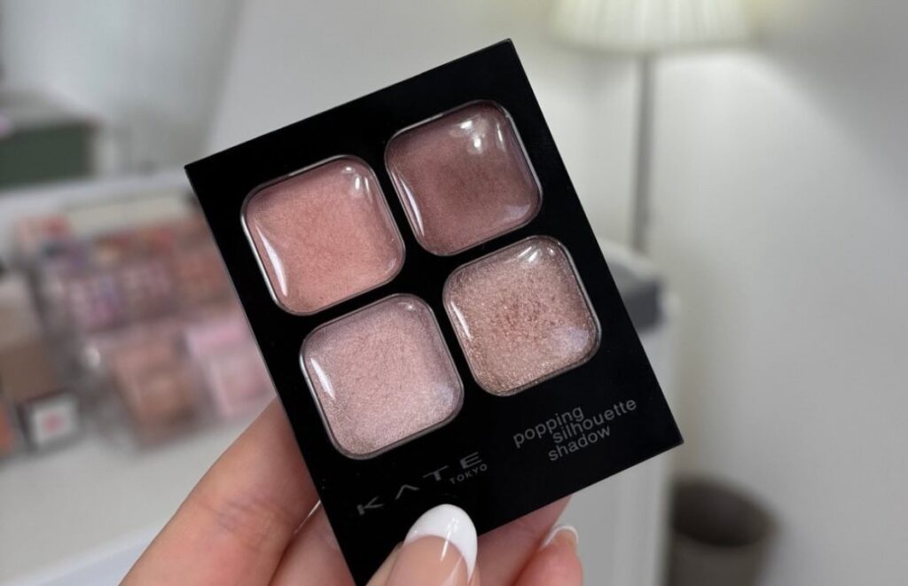 つけてみるとなかなかしっかり発色!「ポッピングシルエットシャドウ ロージーポップ:KATE」