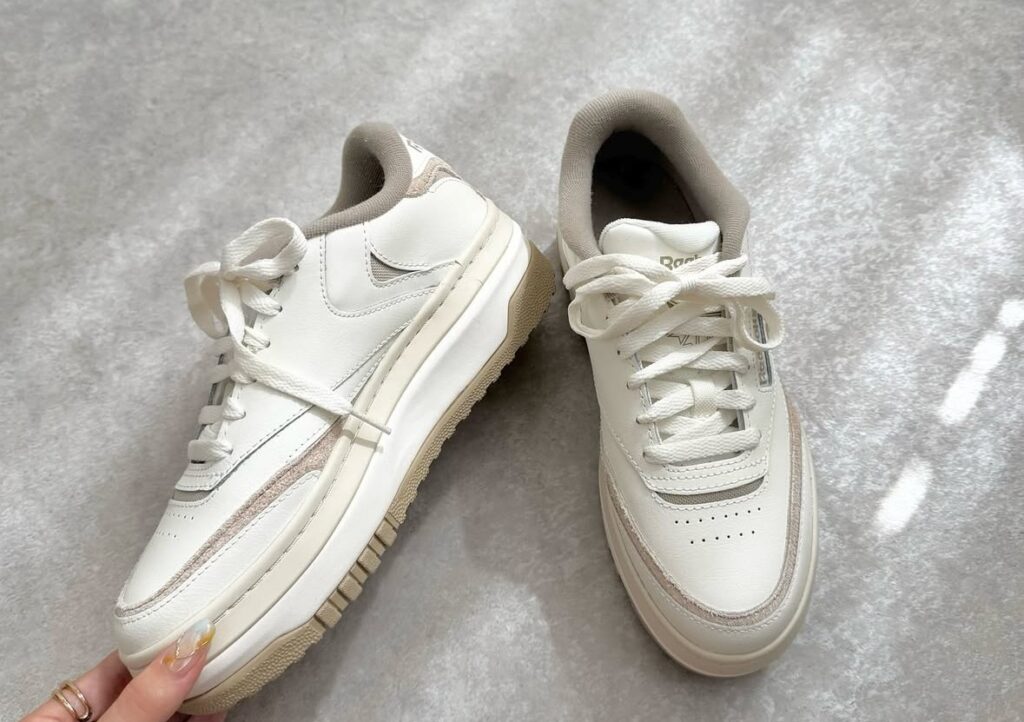 リーボックの定番 Club Cシリーズに少しだけ厚底を足した、Club C Extraシリーズは、厚底具合がちょうど良くって大人可愛いです。