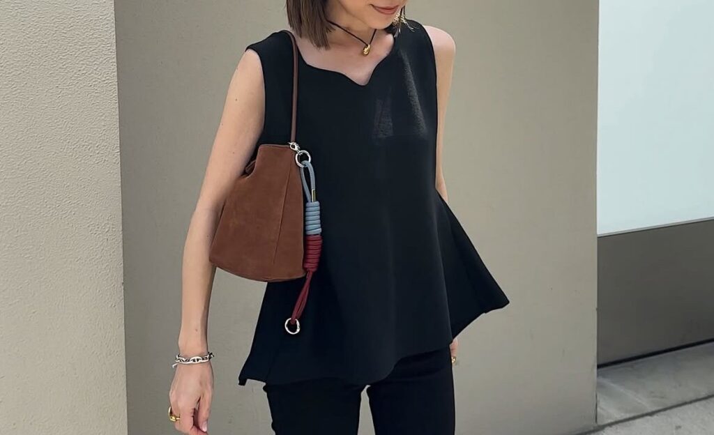 低身長大人コーデにおすすめ!「シャギーラメニットビスチェ」