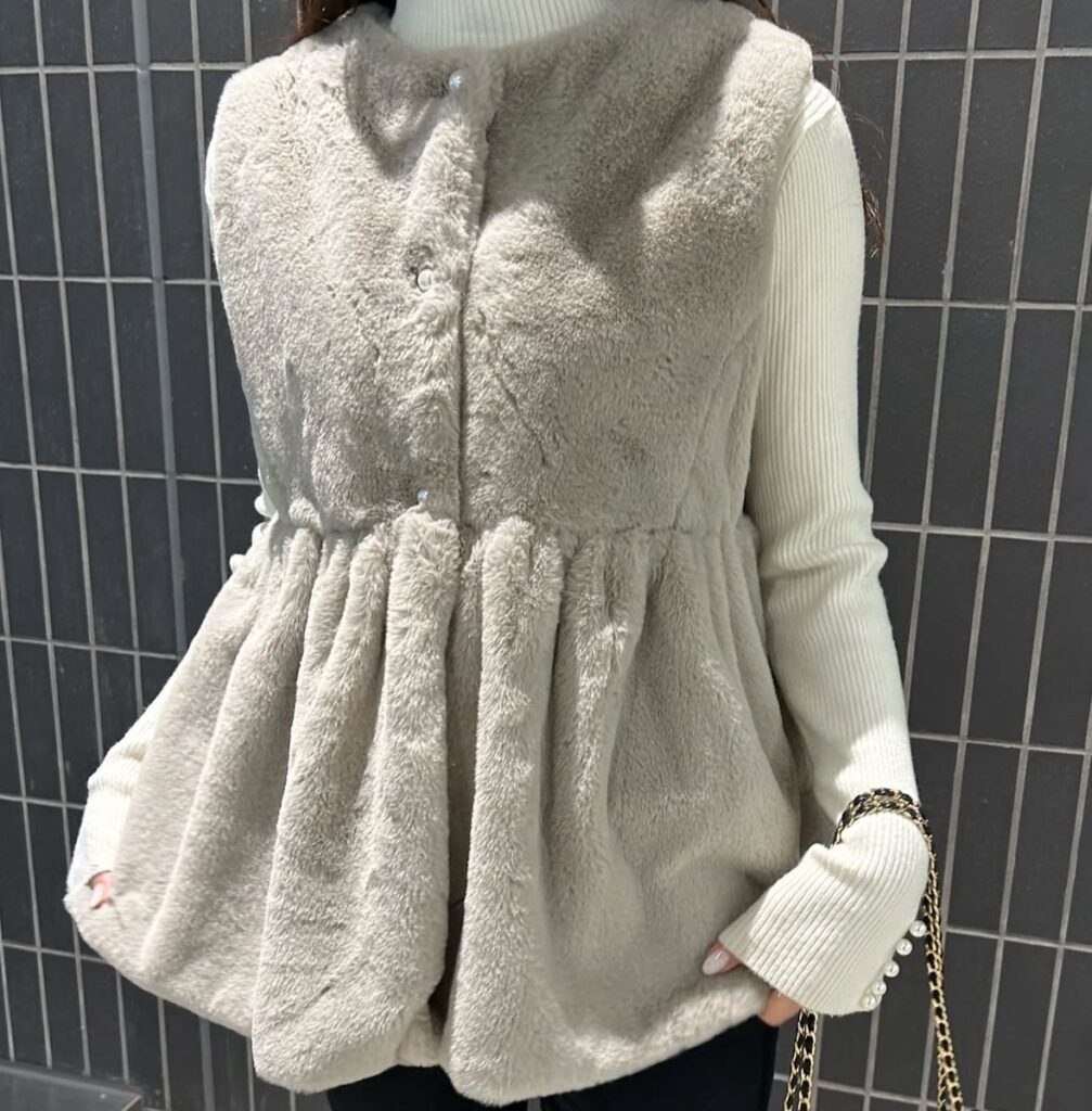 ふわふわで肌触りの良いファーで高見え!「ファーペプラムベスト」