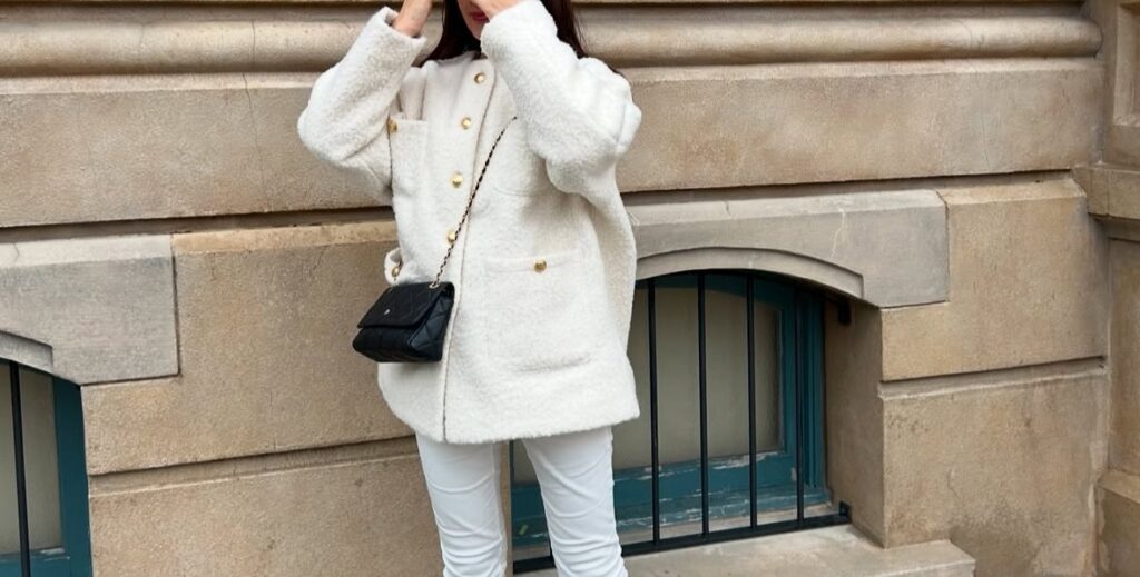 ポケットがたくさんあるから色々入れられて便利です。可愛いがぎゅっと詰まってるんです。白効果の簡単可愛いコーデの出来上がり!このモコモコの生地、つい触りたくなります。甘めが好きな方にはたまりません。
