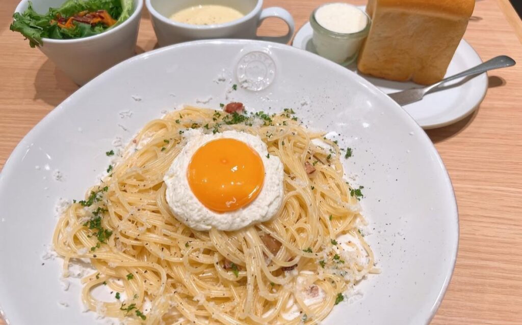 NU茶屋町プラスの3階にお店あります。ショーケースに魅力的なパンたちがずらり!ランチは焼きたてパン付きです。ベーカリーカフェとして関西初出店しました。こちらのお店の看板商品「ぷるぷる生プルマン」付きのランチで人気のカルボナーラがおすすめです。