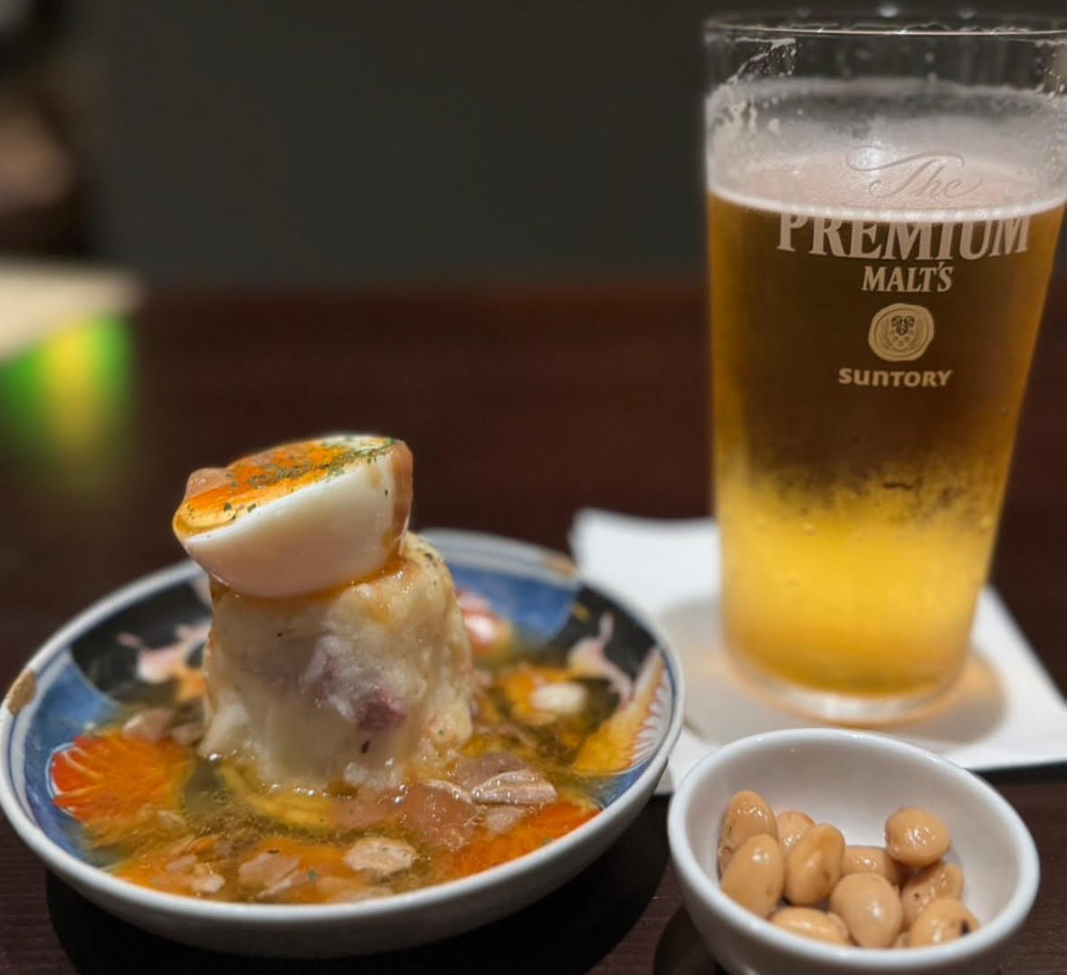 半身の玉子と特製のドレッシングがかかった【三代目ポテトサラダ】や大ぶりの【生・蒸牡蠣】、肉汁溢れるジューシーな【特製メンチカツ】など、どれも日本酒にあう料理ばかりとなっています。