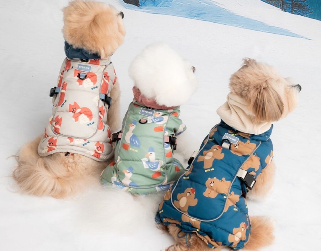 寒い冬や風が強い日の強い味方です。裏の発熱生地のおかげで着用するだけで7℃上がります。何より注目すべきはその着せやすさです。韓国発人気ブランド「バイトミー」から新発売のかわいいワンちゃん用ダウンジャケットが出ています。