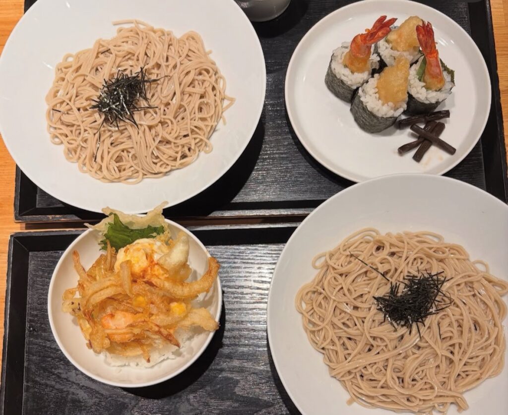 天むすも衣がカラッとしてて本当に美味しいです。天ぷらとお蕎麦を美味しくいただきましょう。鰹のタタキなども楽しめます。十割蕎麦が食べれるお店です。三宮駅近やから行きやすい◎1100円でランチセットが食べれます。