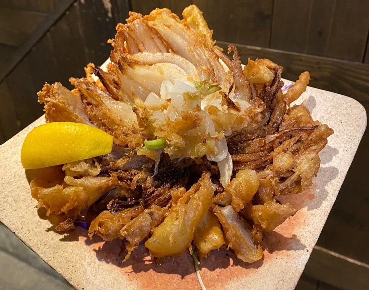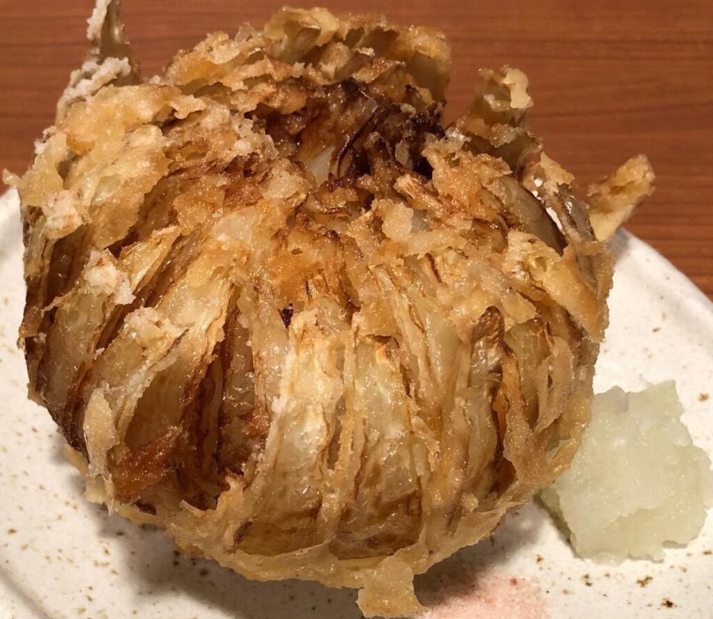 豪快な新玉ねぎの天ぷらがおすすめ!「やさい巻き串と淡路島玉ねぎ ゆづる羽」