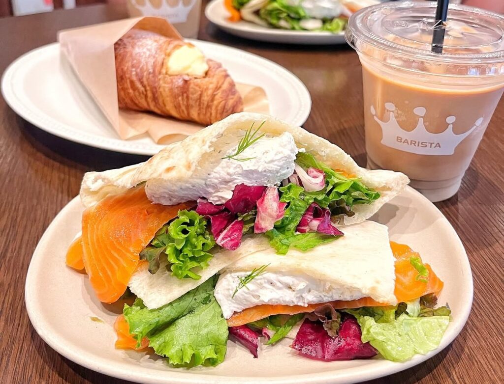 サーモンとスパイスホイップチーズのパニーニはサラダとと塩味の少し効いたフレッシュなサーモンが絶品なサンドとなっています。ベイクドチーズケーキは濃厚な味わいでクセになるんです。店内は併設のサルバトーレクオモさんと繋がっている作りになっており広々してます。