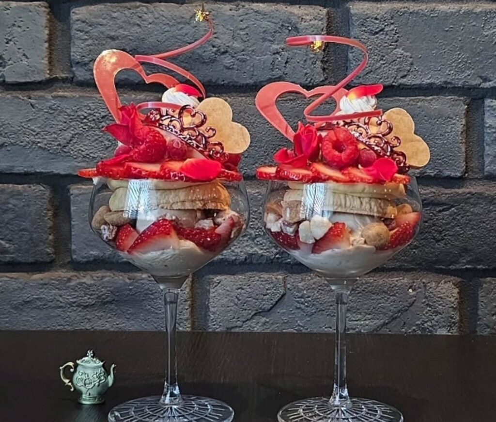 写真映えするイチゴパフェを頂く前にも、美味しいお料理がたくさんあります。いちごが甘くてジューシーで、美味しいです。美しくゴージャスとなっています。中央には見た事ない大きなパフェが乗っているんです。