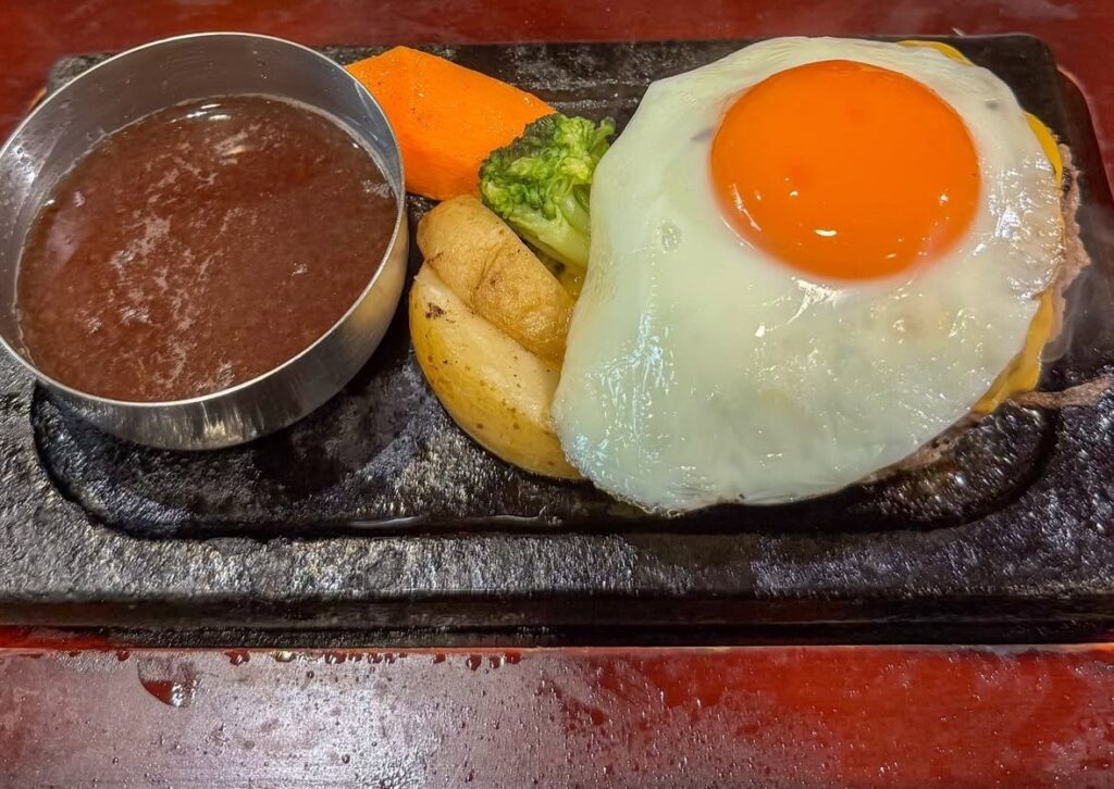 店内は明るく活気があり、入った瞬間からワクワクします。A5ランク黒毛和牛のハンバーグは、外は香ばしく中はふっくらジューシーです。チェダーチーズのコクやたまごのまろやかさを重ねると、幸福感が一気にブーストします。