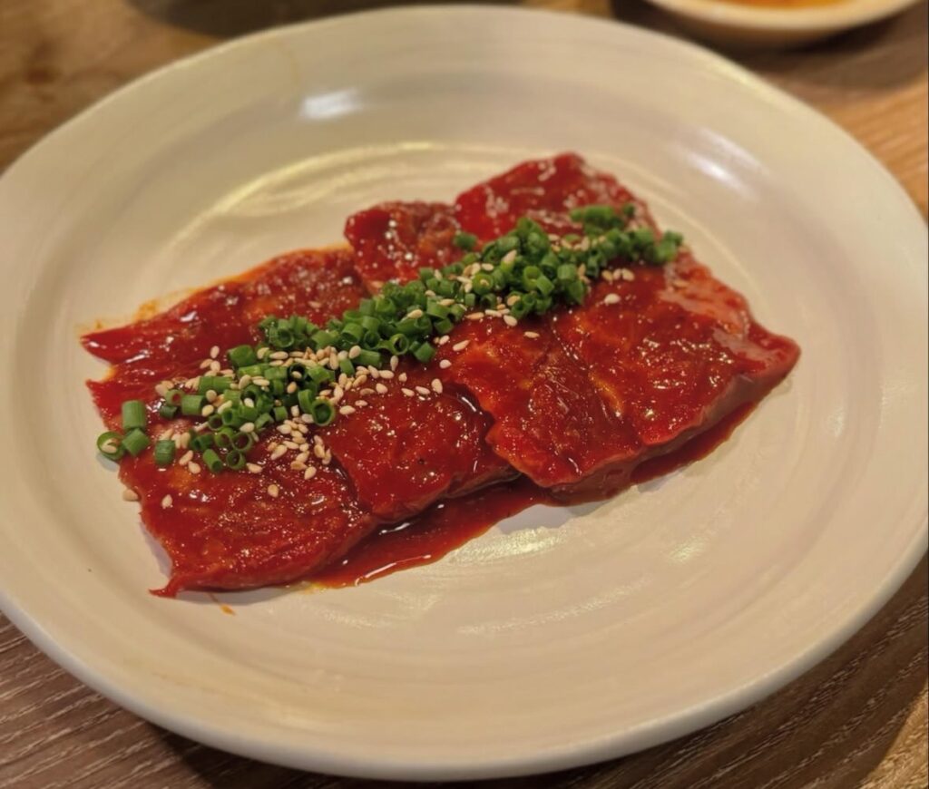驚くほど鮮やかな赤身と霜降り、しかも全く胃もたれしないのが感動的◎洗いダレは脂がのったロースやカイノミには必須です。