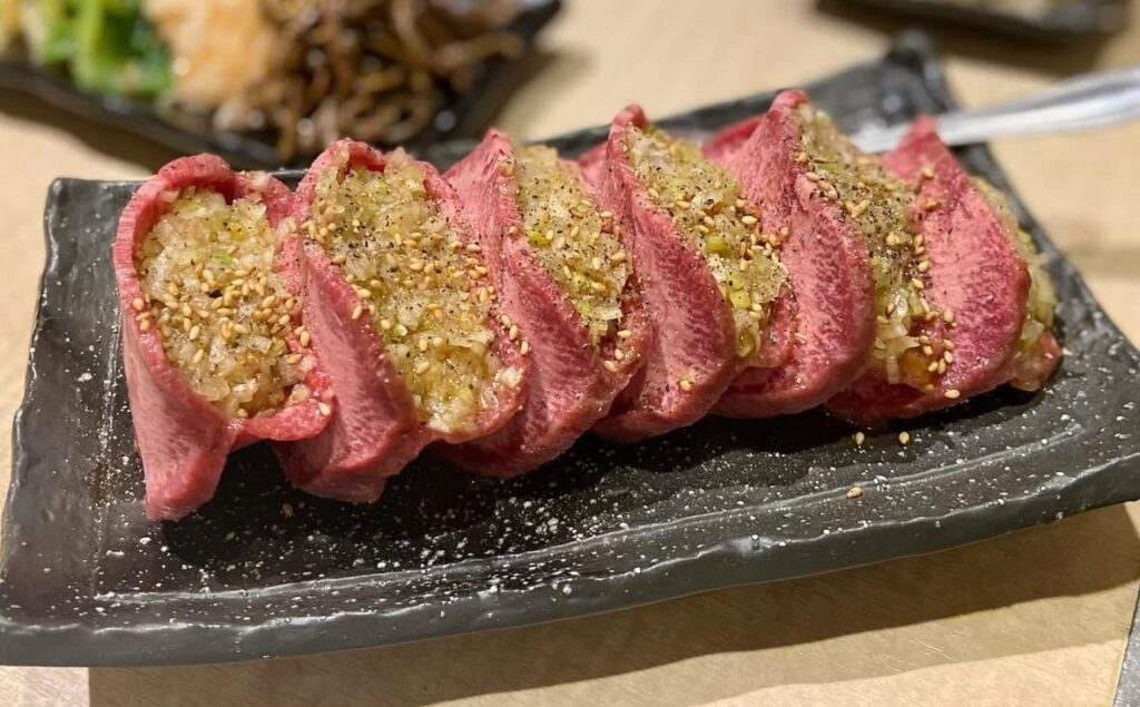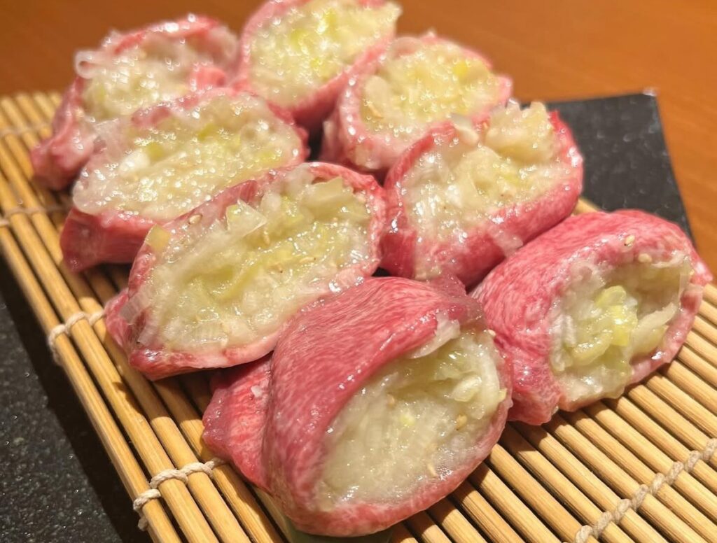 厚切り生タン塩ネギ包み焼きがおすすめとなっています。数量限定で予約必須です。写真だけでもインスタ映えなんだけど、これがねぇ、お肉も柔らかくてジューシーだき、塩ネギもいい感じに効いててめちゃくちゃ美味しい◎