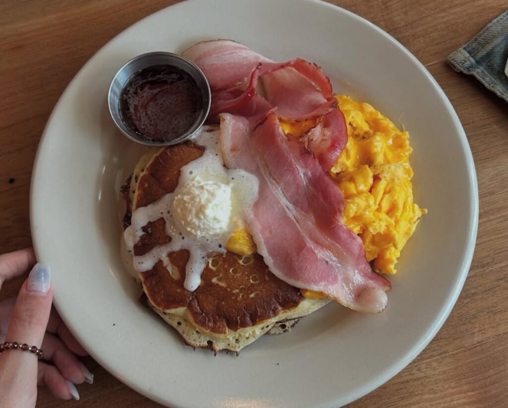 朝9時からオープンしていて、いろんなモーニングメニューがあります。自由に席を選べるんです。窓際のカウンターがおすすめとなっています。ブレックファスト パンケーキ 1,650円がおすすめです。