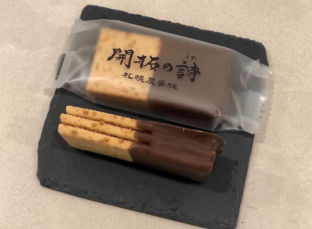 北海道産の素材から作られた土産菓子が大人気です。サクッと軽やかなクッキーが3枚、さらに半分はミルクチョコレートがかかっています。クッキーはしっかりとくっついている訳ではなくて本当に重なっているだけなので、クッキー3枚一気に食べてるみたいで贅沢な感覚になるんです。