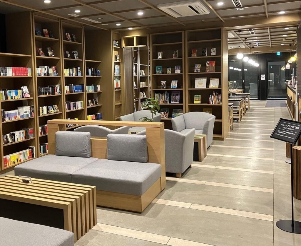 ここはブックカフェとホテルが合体したような施設で、宿泊者はブックコーナーで気に入った本を2冊まで部屋に持ち込めます。