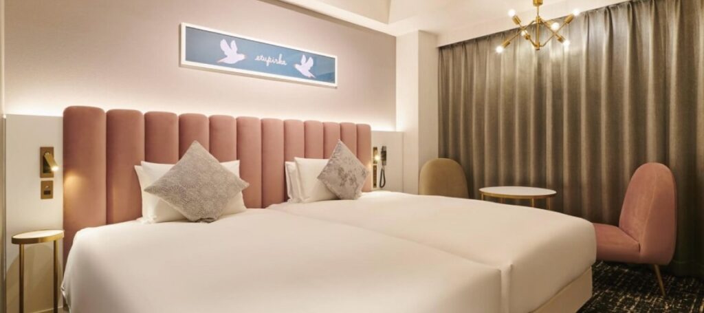 お部屋は、開拓使時代の歴史や文化を感じられるデザインやアート作品が取り込まれていて、窓からは、象徴的なビール工場と赤レンガの煙突が広がっていて、それがまた雰囲気抜群です。時を超えて旅をしている、そんな気分になれる景色となっています。