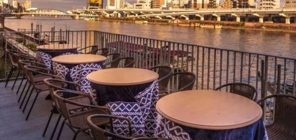 隅田川沿いにある、夜景を一望できる素敵なカフェです。テラス席で抹茶のバスクチーズケーキとドリンクをいただくのもおすすめとなっています。バスクチーズケーキは少し小ぶりなサイズで、食後にちょうどいいです。