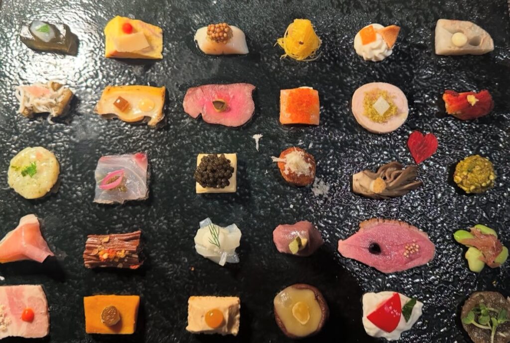 世界的な美食ガイド『ゴ・エ・ミヨ』を獲得しています。圧巻の前菜盛り合わせですが、美しいだけではなく、一品一品が手の込んだとても美味しい料理ばかりです。コース料理全てが深みがあり、とても素敵なひとときを過ごせます。