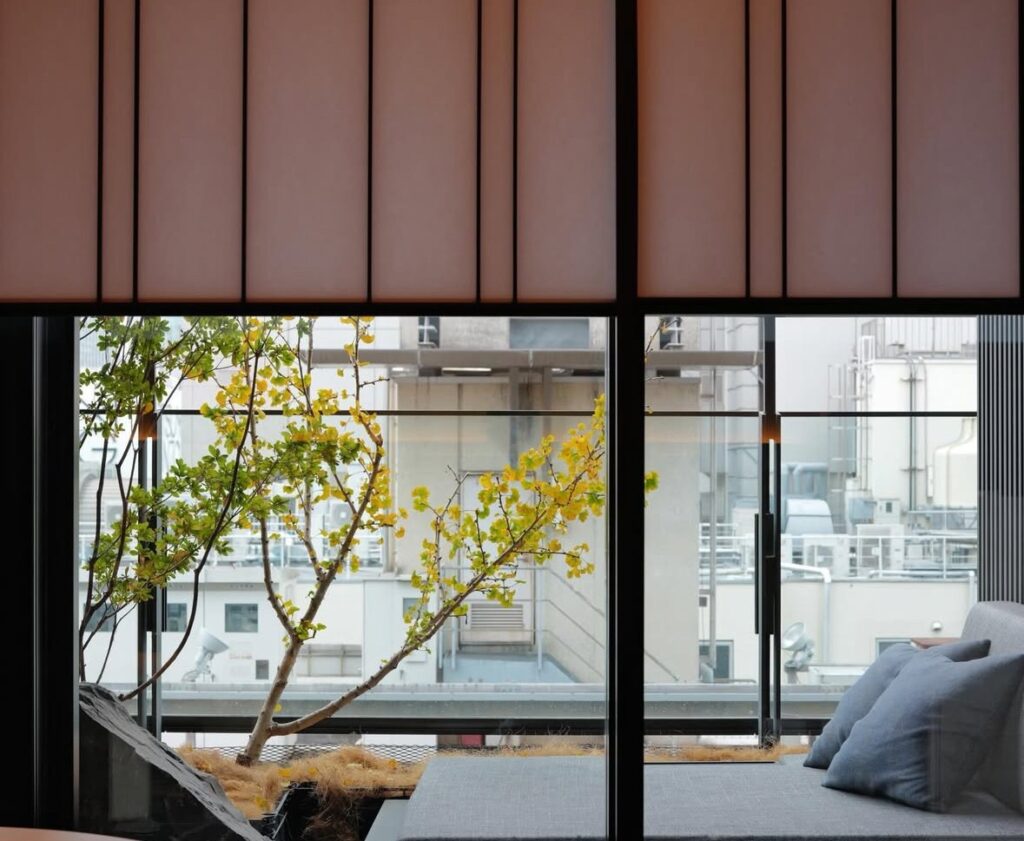 日本橋にあります。淡色好きにおすすめのホテルに訪れてみませんか?無機質なデザイン、光が沢山入って気持ちいいです。
