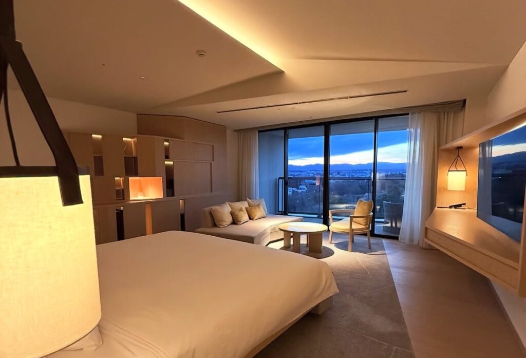 どこを切り取ってもシンプルで素敵です。眺めも日の入り方も最高すぎます。洗面所やお風呂がタイルなのも素敵です。ホテルのバスルームが全面グレーのタイルでかわいすぎます。シャンプー、ボディソープも良い香りです。