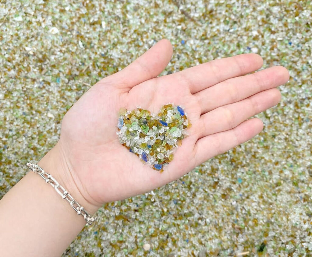色とりどりのガラスの砂がキラキラ輝く!「ガラスの砂浜」