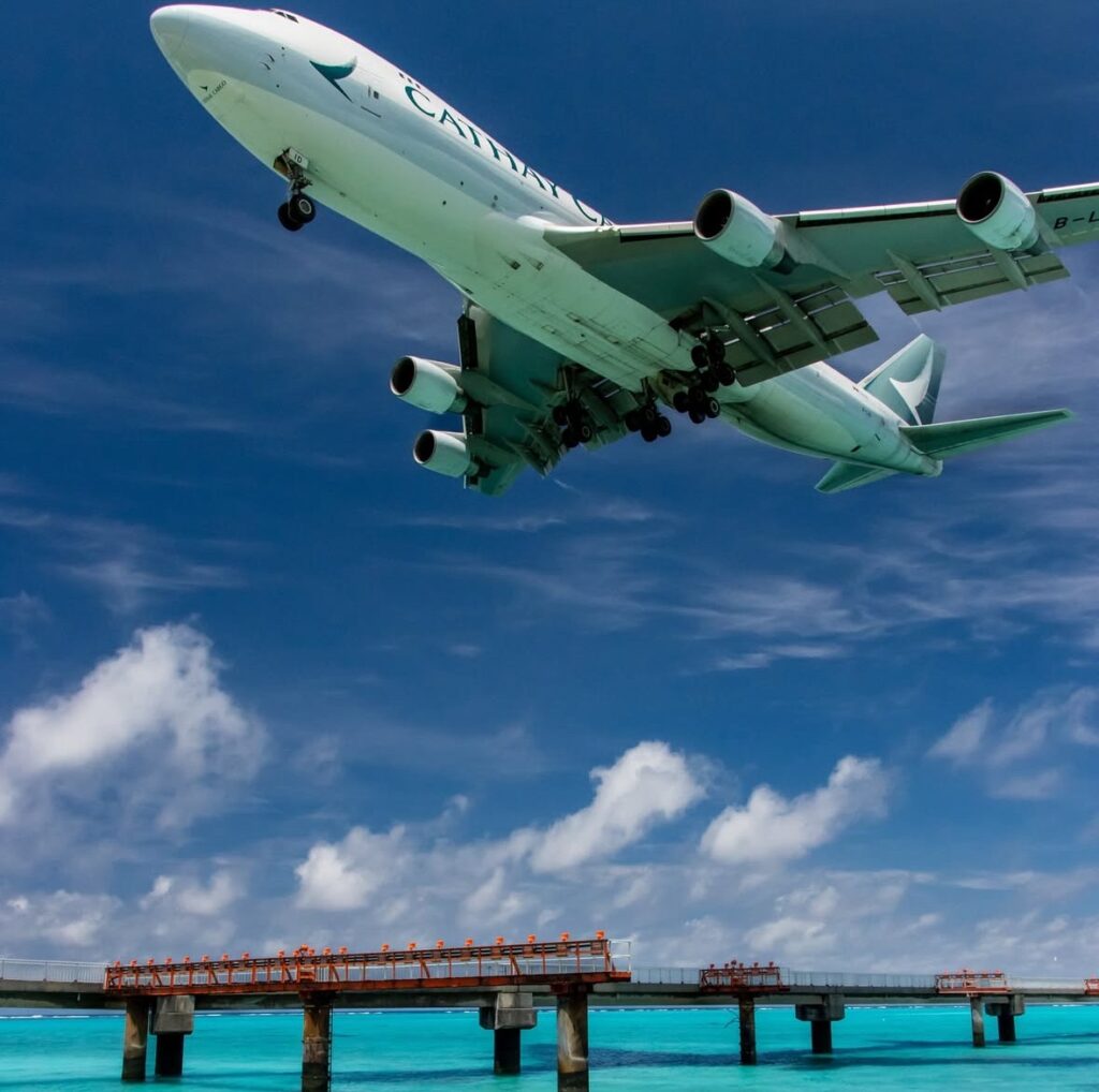 下地島空港の滑走路の端(方位170度)に位置するので、タイミングが合えば離着陸する飛行機が間近で見れます。